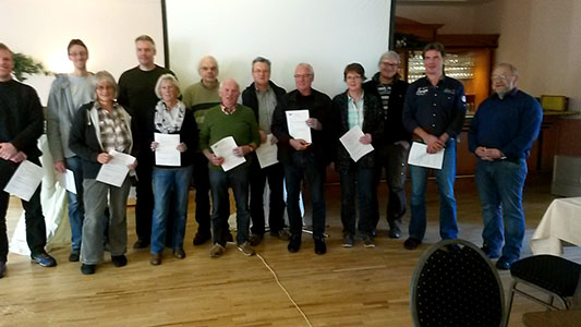 Dank vieler Wiederholungen und umfassendem Bildmaterial waren alle Teilnehmer am Ende des Lehrgangs zufrieden und fühlten sich sehr gut informiert. Eine Prüfung rundete die Veranstaltung ab. Mehreren Imkern konnte am Ende bereits das Zertifikat von Guido Eich ausgehändigt werden, die anderen müssen noch den praktischen Teil absolvieren