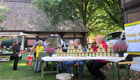 Der 1. Vorsitzende des Landesverbandes Hannoverscher Imker, Jürgen Frühling, ließ es sich nicht nehmen die Teilnehmer des Rotenburger Imkervereins zu begrüßen. Im Garten der 2. Vorsitzenden des Landesverbandes wurden die Teilnehmer reichlich mit Kaffee und Kuchen bewirtet.