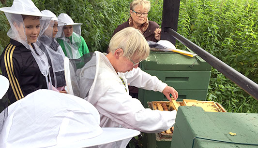 Elli Döbler und Irma Klawitter zeigten den Kindern den Umgang mit den Bienen.